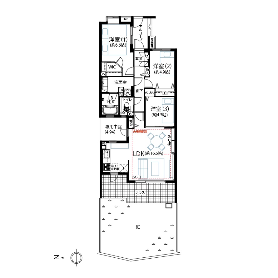 | 現況 | 空家 | バルコニー面積(テラス) | 11.82㎡ |