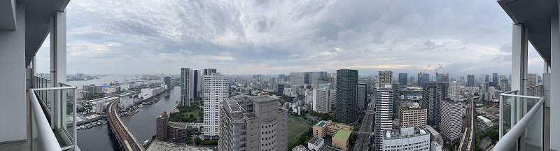 南西角部屋・24.8㎡のL型バルコニー、日当り・眺望良好 ~バルコニーより富士山・京浜運河を望めます~