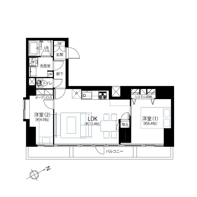 | 面積 | 49.84㎡ | 間取り | 2LDK |